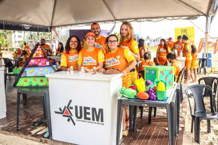 Fotos: UEM A Universidade Estadual de Maringá (UEM) participa do Verão Maior Paraná 2026, levando ao Litoral paranaense projetos de extensão que aproximam a ciência, a educação e a sustentabilidade do público que frequenta as praias do estado durante a temporada de verão. A programação do evento, que iniciou em 28 de dezembro de 2025 vai até 8 de fevereiro de 2026 e já reuniu milhares de turistas em uma agenda que integra cultura, esporte, lazer, cidadania e divulgação científica. Três projetos da UEM viajaram ao litoral paranaense: "Cienciando”; “Horta do Saber” e “SAN em Ação - Alimentação Saudável e Sustentável nas Comunidades Paranaenses".