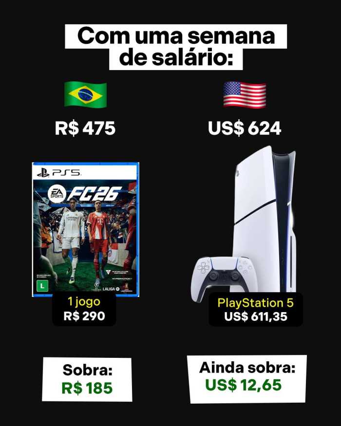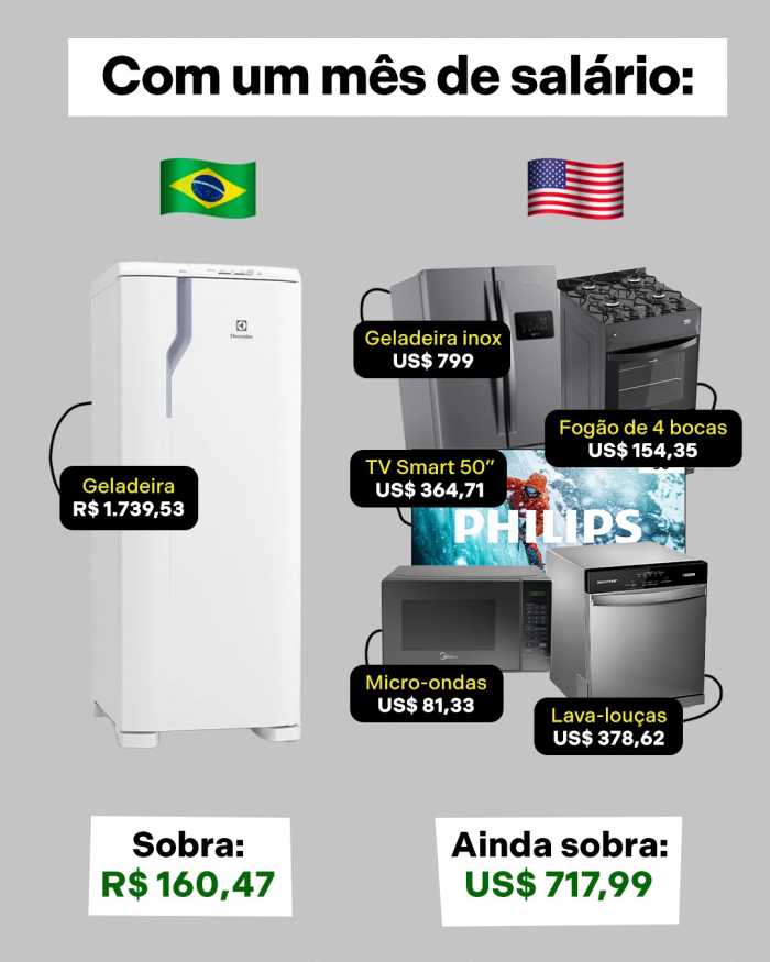 Essa comparação mostra o quanto nós, brasileiros, temos que trabalhar para conquistar bens comuns que, em outros países, não exigem tantos dias de esforço assim.