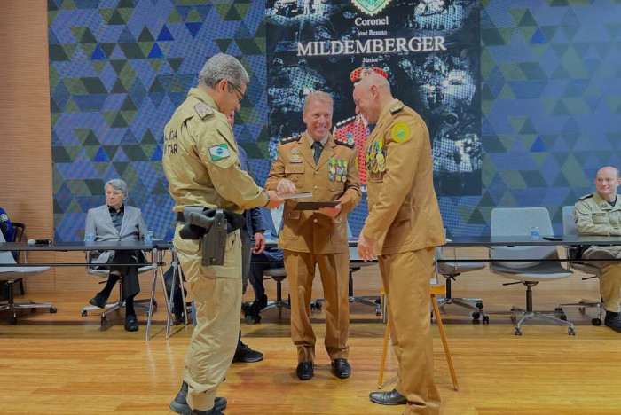 Durante o ato, o coronel Mildemberger foi homenageado por seus mais de 30 anos de serviço à segurança pública, marcando sua despedida da ativa rumo à reserva remunerada.