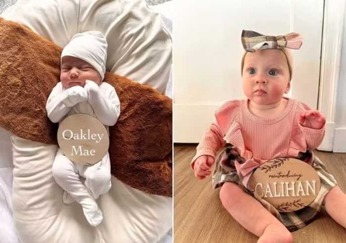 “Passamos a maior parte da gravidez planejando, independentemente de ser menino ou menina, que o bebê se chamaria Calihan”, explica Isabel. Mas, no último mês de gravidez, Isabel teve certeza de que era uma menina e mudou Oakley Mae para o primeiro lugar no ranking de nomes femininos.