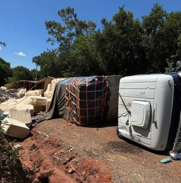Por volta das 14h24, um caminhão que transportava fardos de algodão tombou no quilômetro 28 da rodovia PR-182, nas proximidades da área do bosque.
