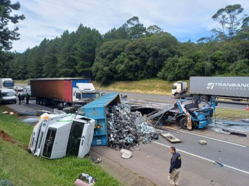 A rodovia precisou ser totalmente bloqueada para o trabalho das equipes de socorro e para a complexa operação de remoção do caminhão tombado. O bloqueio gerou quilômetros de filas e intensa lentidão para quem seguia em direção à capital paranaense. A Polícia Rodoviária Federal (PRF) e equipes de apoio trabalharam na sinalização e liberação gradual da via. As causas exatas da colisão ainda serão apuradas pela perícia.