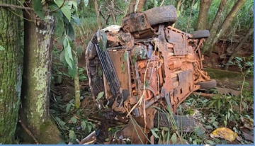 Em seguida, o veículo colidiu com uma caminhonete Fiat Toro. Com a força da batida, a caminhonete saiu da pista, desceu uma ribanceira e capotou em uma área de mata às margens da estrada.