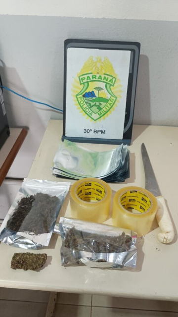 Ao chegarem na residência, os policiais conversaram com a moradora, que confirmou um desentendimento com o marido, mas negou agressões físicas. Diante de informações de que o suspeito poderia estar armado e ser foragido, a PM realizou uma entrada tática. O homem foi encontrado em um dos quartos apresentando forte nervosismo. Logo na sala, uma porção de maconha foi localizada em local de fácil acesso para as crianças da casa. Com a suspeita de que haveria mais drogas escondidas, a Guarda Municipal de Londrina foi acionada com o apoio de um cão farejador. O animal indicou o forro da casa, onde os agentes encontraram 137 gramas de maconha (incluindo a flor da droga), embalagens tipo "zip", fitas e materiais para fracionamento. O suspeito admitiu que vendia a droga para complementar a renda. Ele foi preso em flagrante e levado à Central de Flagrantes.