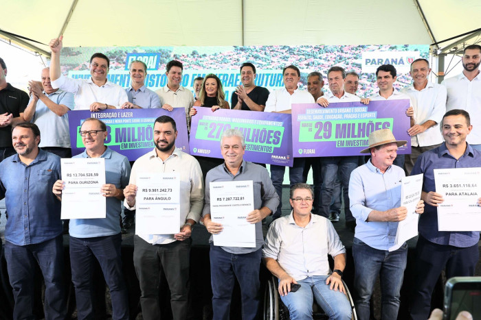 Ainda na área da agricultura, também foram entregues simbolicamente maquinários para os municípios que compõem a Associação dos Municípios do Setentrião Paranaense (Amusep). O investimento é de R$ 167 milhões para equipamentos como caminhão, pá carregadeira, rolo compactador, trator de esteiras, motoniveladora, retroescavadeira e escavadeira.
