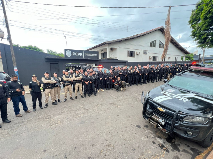 Para o cumprimento das ordens judiciais, participaram 74 policiais civis, com 25 viaturas, e apoio aéreo do Grupo de Operações Aéreas da Polícia Civil do Paraná (GOA).