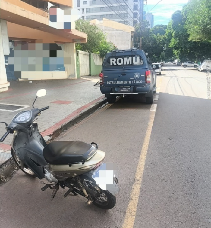 Durante patrulhamento nas imediações do Parque do Ingá, a equipe da ROMU (Ronda Ostensiva Municipal) suspeitou de uma Honda Biz 125, de cor bege.