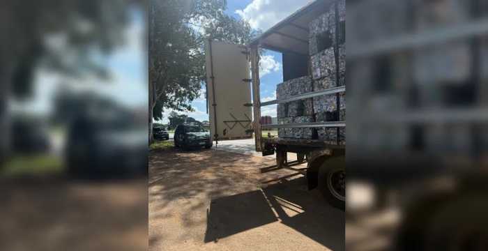O veículo transportava latas amassadas destinadas à reciclagem e, durante a vistoria realizada pelas equipes, foram localizados os aparelhos eletrônicos ocultos em compartimentos da cabine e também na área da cozinha do caminhão, evidenciando a tentativa de dissimulação da carga ilícita.