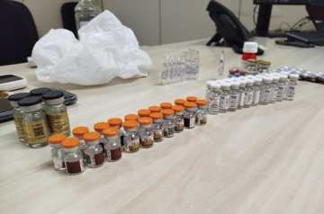 Ao realizar a busca pessoal, os policiais encontraram 21 unidades de anabolizantes e 45 frascos de medicamentos emagrecedores escondidos por baixo das vestes dos indivíduos.