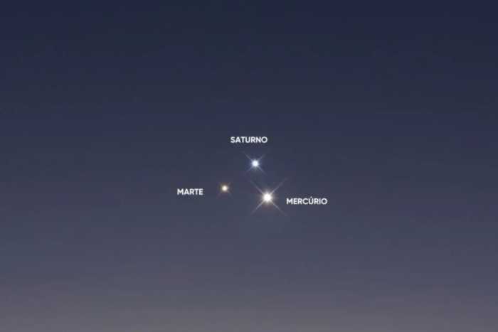 Três planetas – Marte, Saturno e Mercúrio – estarão visíveis a olho nu no céu brasileiro após formarem “Três Marias” planetárias no céu