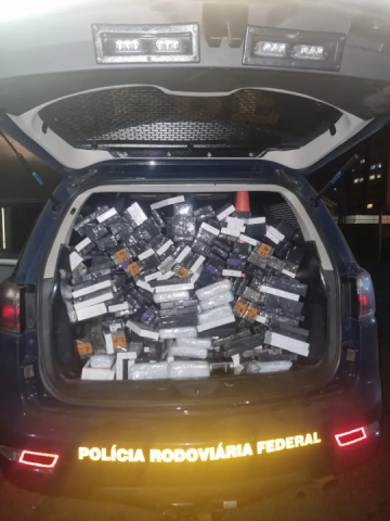A carga, composta por cerca de 600 ampolas de medicamentos destinados ao emagrecimento, estava acondicionada em uma mochila e uma mala no porta-malas do automóvel.