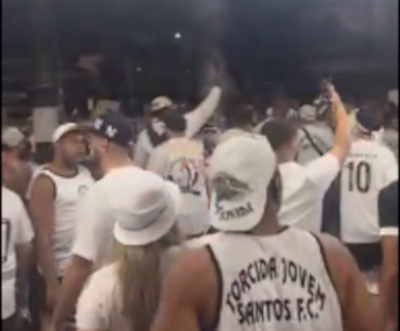 Reprodução O empate do Santos com o CRB, por 1 a 1, pela Copa do Brasil, foi seguido de um confronto entre torcedores santistas e policiais nos arredores da Vila Belmiro, na noite desta quinta-feira (1º). A saída do estádio foi marcada por explosões, correria e gás lacrimogêneo para dispersar diversos grupos de torcedores.